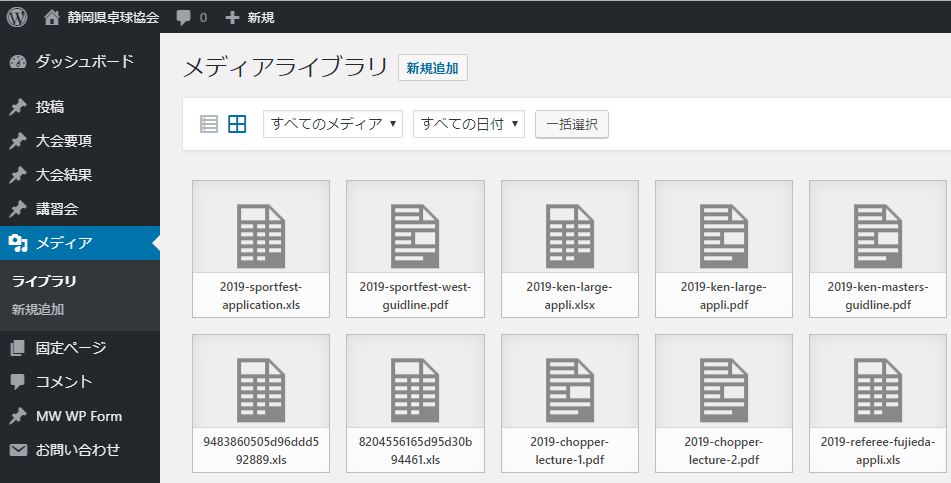 ボタンを作成する前に,ボタンをクリックした時に開くPDFをアップロードしておきます。アップロードするには,左のメニューバーからメディアをクリックし,ライブラリを開きます。