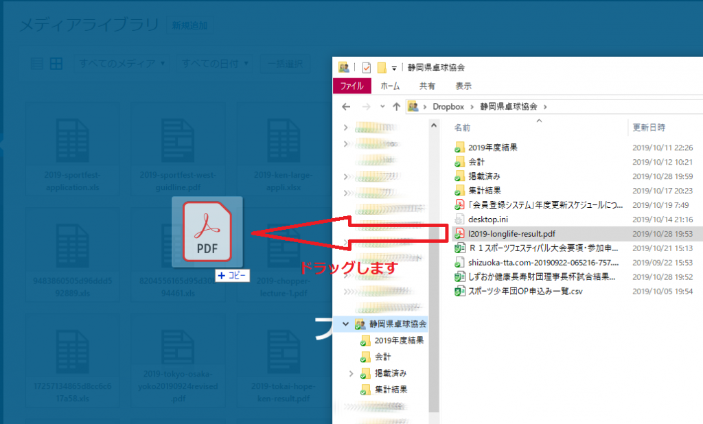 アップロードするファイルを,ライブラリ上にドラッグすると,自動的にアップロードが開始されます。