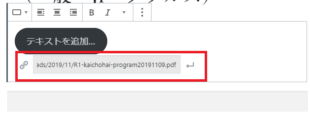 先程コピーしたPDFファイルのリンクを貼り付けます。