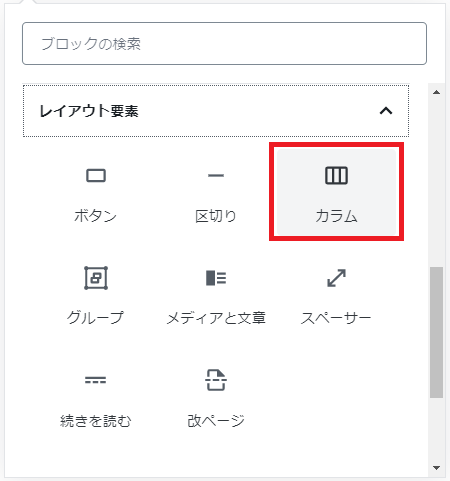 ブロックの追加から,レイアウト要素のカラムを選択し,挿入します。